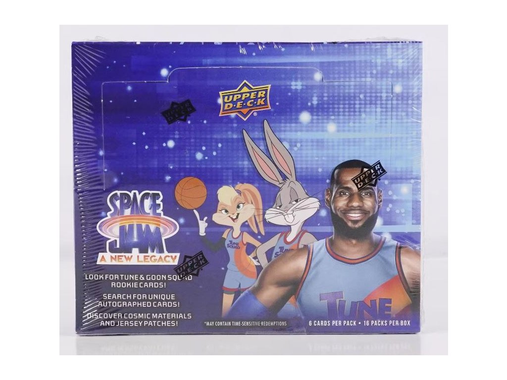 Basketbalové karty 2021 UD Space Jam A New Legacy Hobby Box 16-pack obsahuje 16 balíčků v boxu a 6 karet v balíčku - celkem 96 karet v boxu.