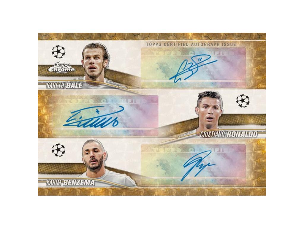 Najděte si řadu autogramiád, včetně epické trojité autogramiády All-Time Scorers UCL s nejlepšími střelci všech dob UCL: Messim, C. Ronaldem a Lewandowskim. Klasika od Chrome, nenechte si ujít velmi žádané dvojité a trojité autogramy, ani zbrusu nové a vzácné autogramy Marks of Excellence na kartě, které se v této sezóně UCC objeví v několika produktech.