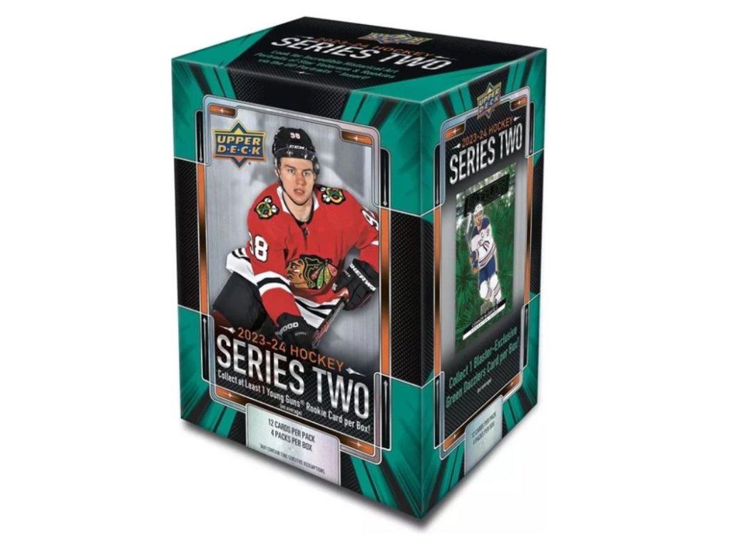 Hokejové karty 2023/24 Upper Deck Series 2 NHL Blaster Box obsahuje 4 balíčky a 12 karet v balíčku - celkem 48 sběratelských hokejových karet!