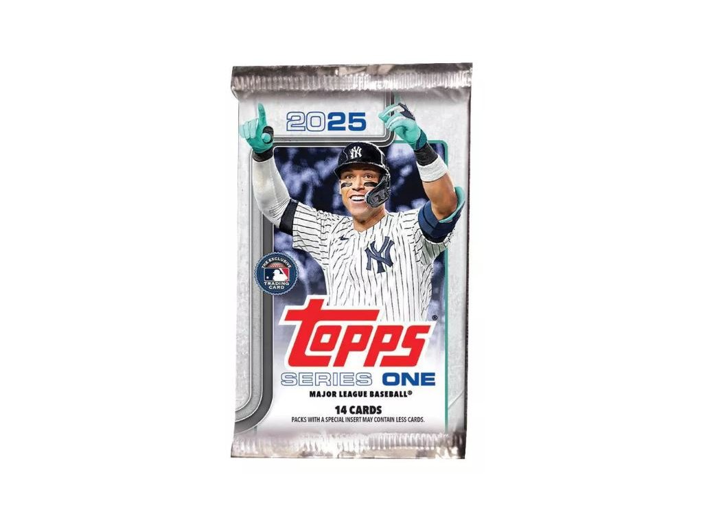 Baseballové karty 2025 Topps Series 1 Baseball Super Box obsahuje 10 balíčků a 14 karet v balíčku - celkem 140 sběratelských baseballových karet!