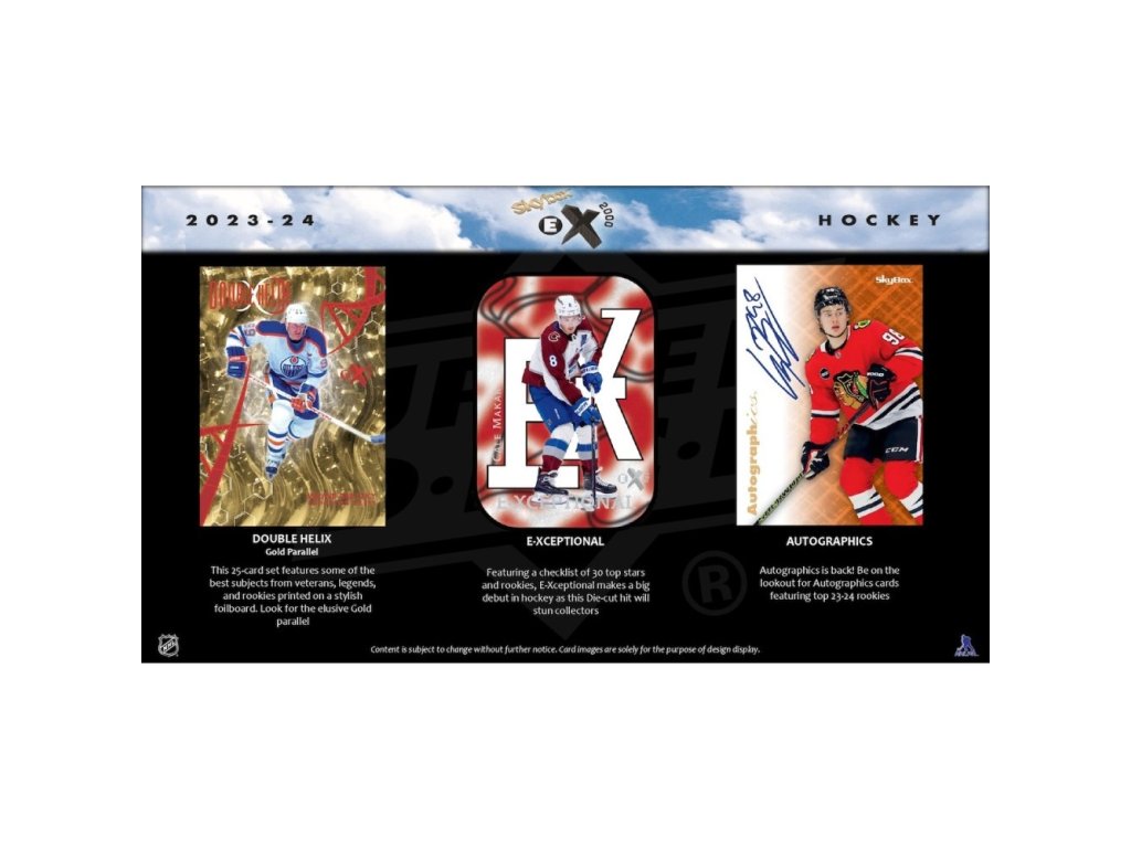 Hokejové karty 2023/24 Upper Deck Skybox E-X 2000 Hockey Hobby Box obsahuje 24 balíčků a 2 karty v balíčku - celkem 48 sběratelských karet!