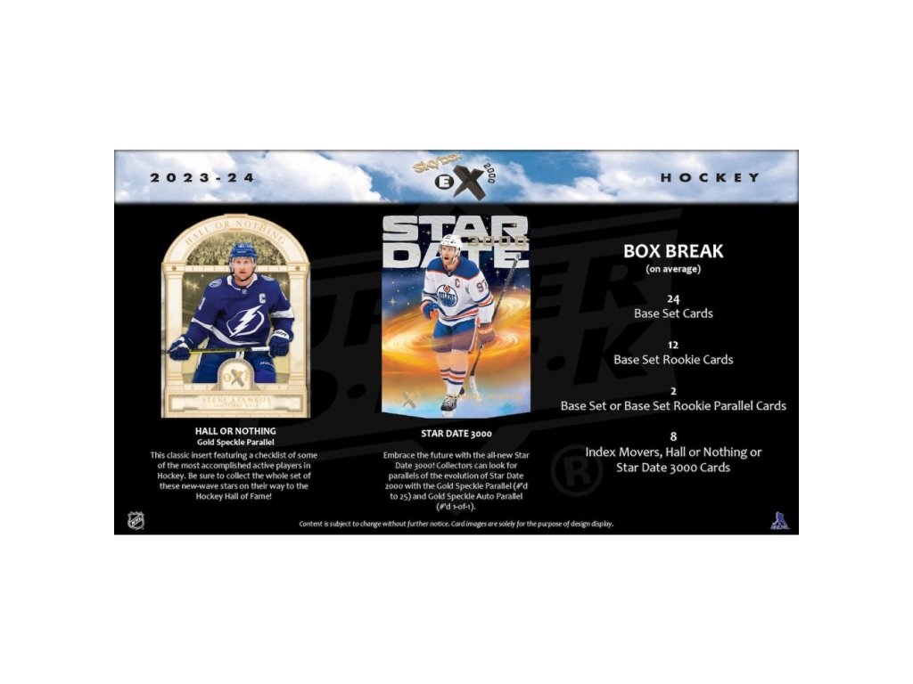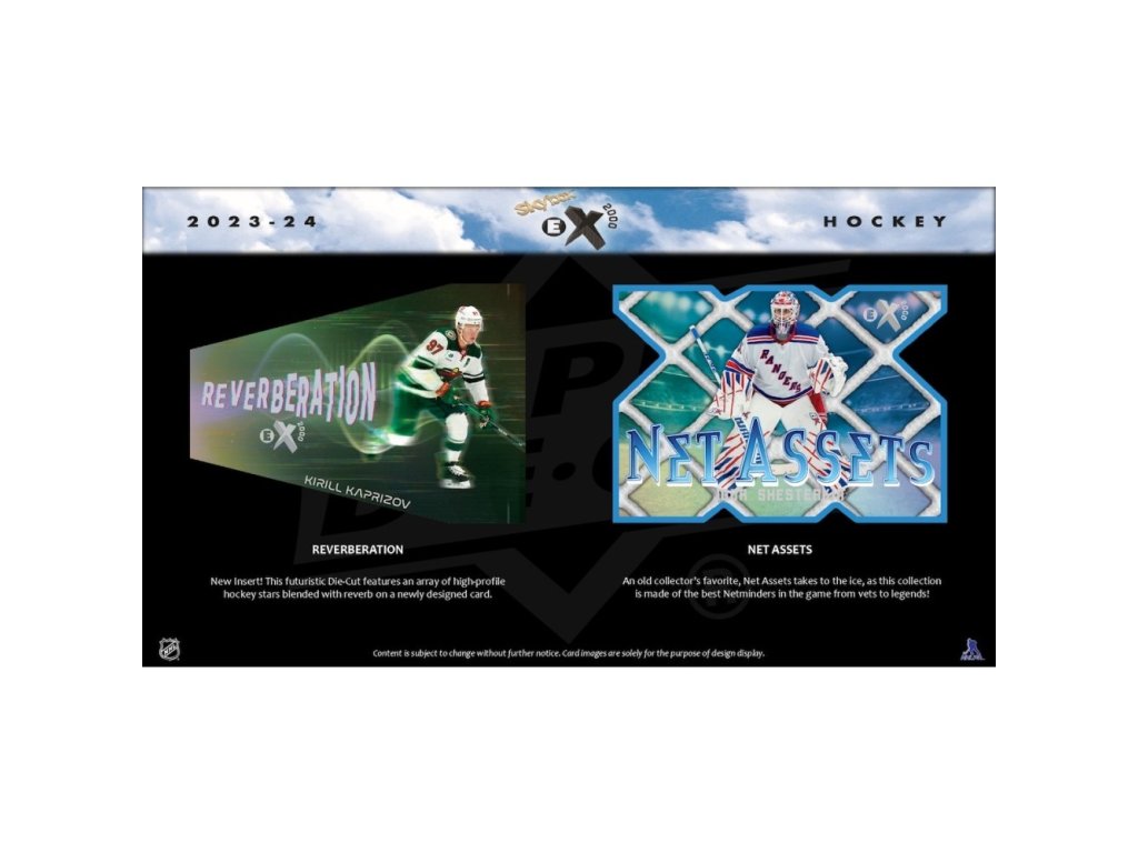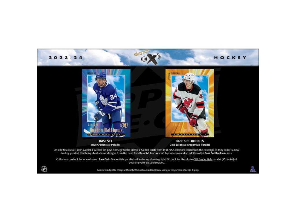 Série 2023-24 NHL E-X 2000 vzdává hold klasickým kartám E-X 2000 z roku 1996-97. Můžete je pamatovat také ze série 2016-17 Flair Showcase (jako insertní kartu E-X 2017). Sběratelé si mohou vychutnat nostalgii při sbírání této hokejové edice, která přináší zpět ikonické designy z minulosti. Base Set obsahuje 100 karet nejlepších veteránů (současných hráčů) a 50 Base Set Rookies karet!