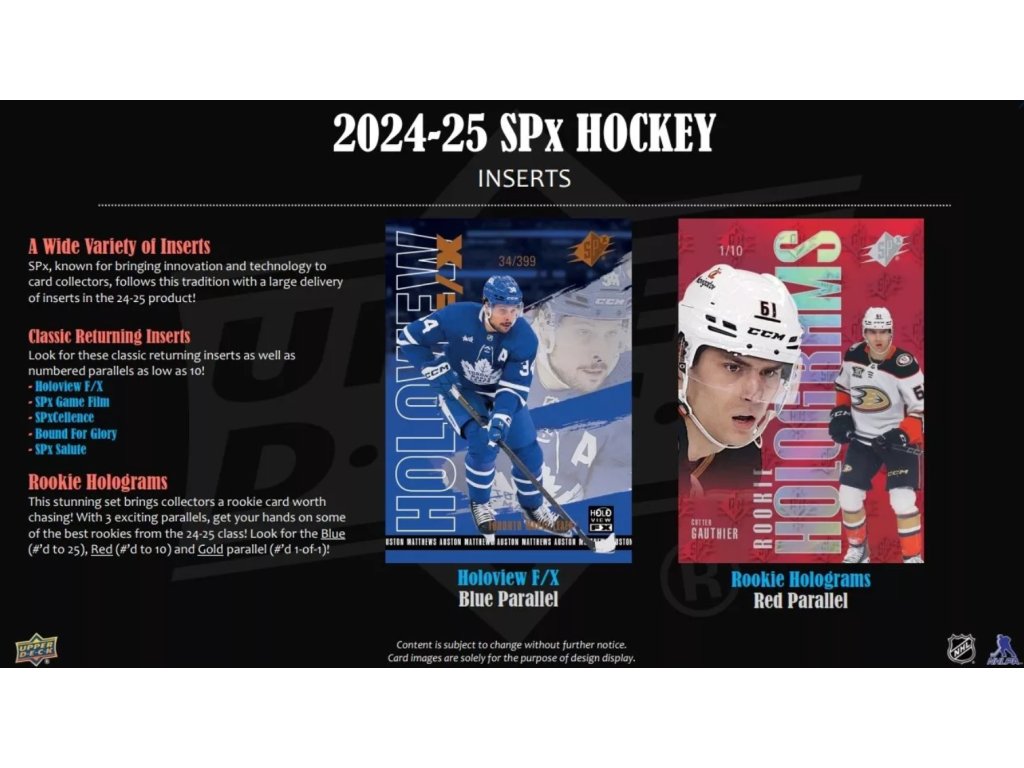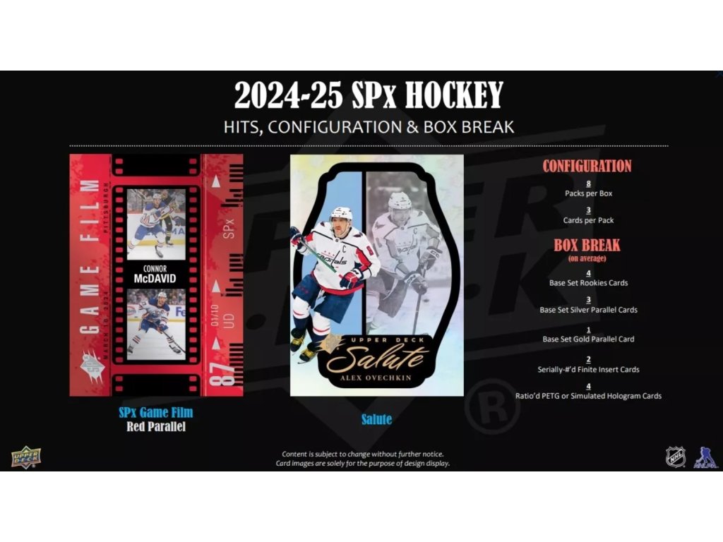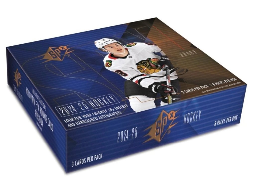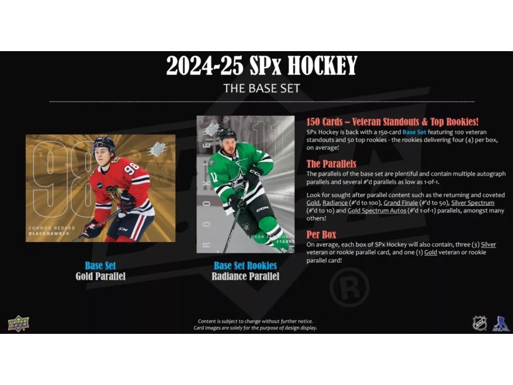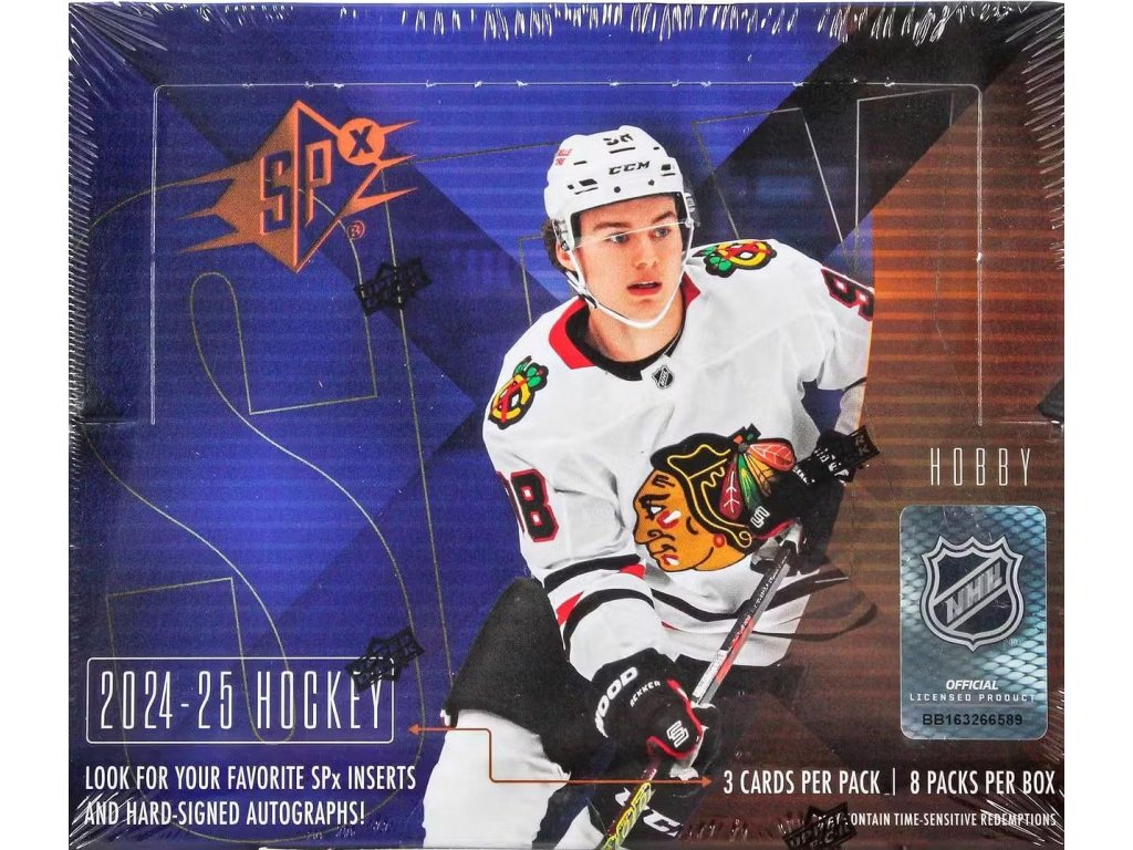 Hokejové karty 2024/25 Upper Deck SPx Hockey Hobby Box obsahuje 8 balíčků a 3 karty v balíčku!