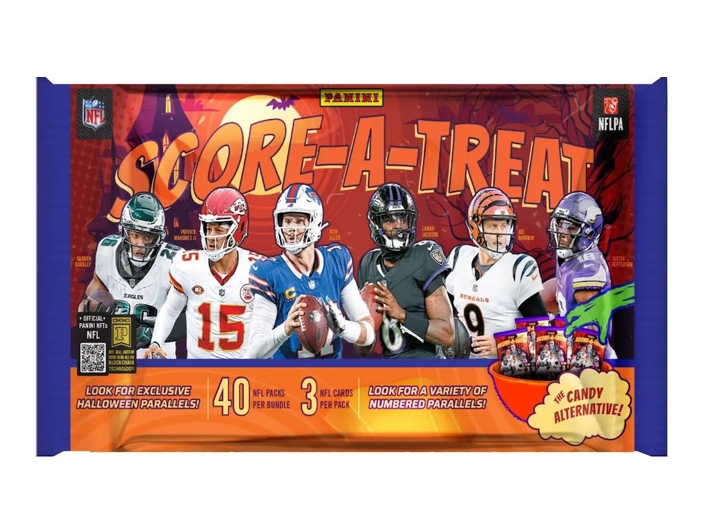 NFL karty 2025 Score-A-Treat Football Bundle obsahuje 40 balíčků a 3 karty v balíčku - celkem 120 sběratelských karet!