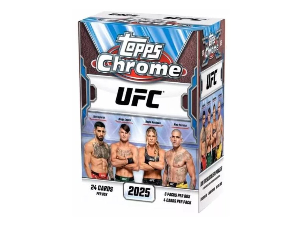 UFC karty 2025 Topps Chrome UFC Blaster Box obsahuje 6 balíčků a 4 karty v balíčku - celkem 24 sběratelských karet UFC zápasníků!