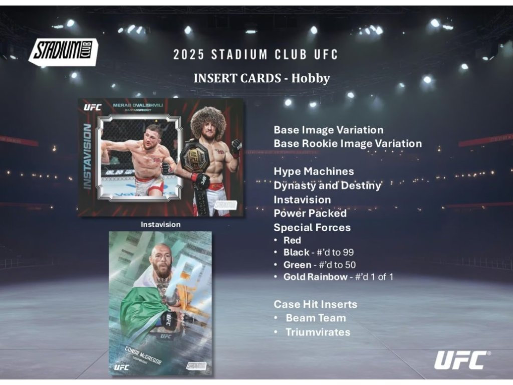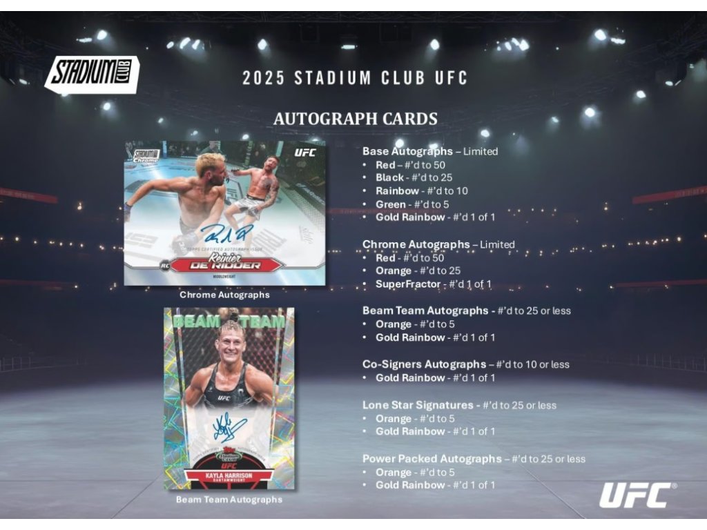 Díky poutavé grafice a silnému obsahu je UFC Topps Stadium Club z roku 2025 nutností pro fanoušky UFC i amatérské fanoušky.